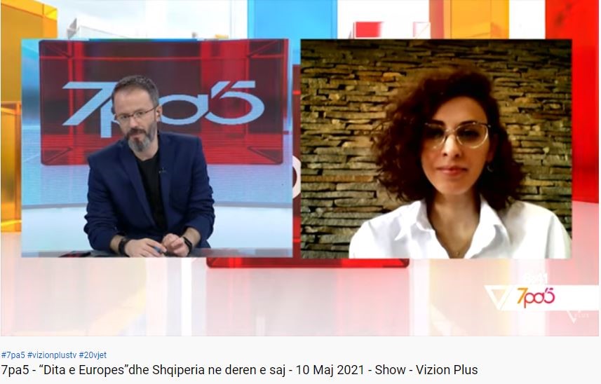 Më 10 maj 2021, Mona Xhexhaj (Drejtore Ekzekutive e AIEN) ishte e ftuar në VizionPlus për të folur mbi Ditën e Europës dhe perspektivën europiane të Shqipërisë. Ajo tha se edhe në kohë pandemie qasja pro-europiane e vendit tonë dhe dëshira për të arritur një transformim politik, ekonomik dhe social gjatë procesit të integrimit nuk ka ndryshuar. Më tej, Xhexhaj komentoi reformën në drejtësi dhe atë zgjedhore duke thënë se vëzhguesit ndërkombëatrë e kanë vlerësuar pozitivisht. Ajo u ndal dhe te “Konferenca për të Ardhmen e Europës” (Future of Europe) duke e parë si një mundësi të mirë për qytetarët që duan të angazhohen. Ata do mund të japin rekomandimet e tyre për tre shtylla kryesore: të drejtat e njeriut dhe shtetin e së drejtës, zhillimin ekonomik dhe social si dhe për Europën si aktor global. Së fundmi, Xhexhaj theksoi se Shqipëria ka një rrugë të gjatë dhe shumë punë para se të bëhet pjesë e BE-së.